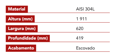 AISI 304, com acabamento escovado.