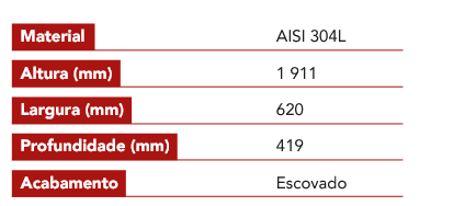 AISI 304, com acabamento escovado.